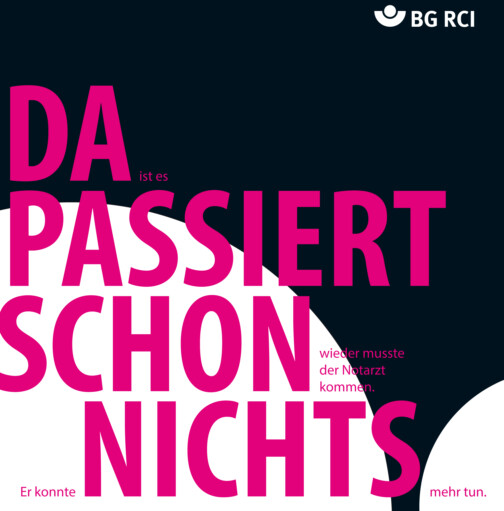 Die Berufsgenossenschaft Rohstoffe und chemische Industrie (BG RCI) trifft auf ihrem Plakat den wunden Punkt. "Da passiert schon nichts"; Wahrscheinlich unter den ersten fünf der berühmten letzten Worte...
